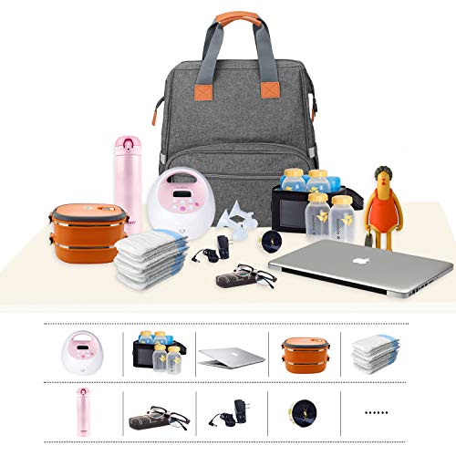 Teamoy Breast Pump Bag Compatible with Spectra S1,S2, Medela and Cooler Bag, Convertible Breast Pump Tote and Backpack with Laptop Sleeve for Working Moms, Gray