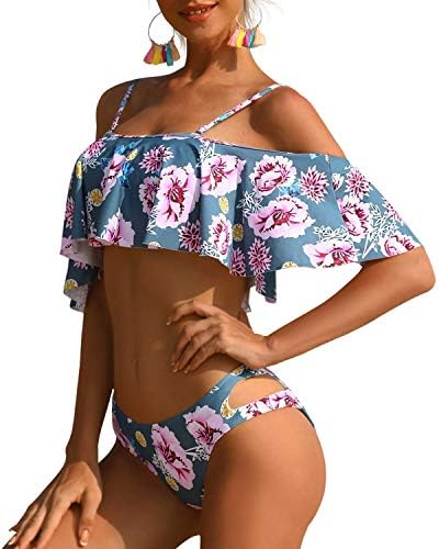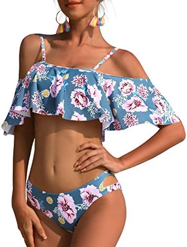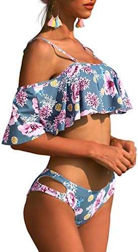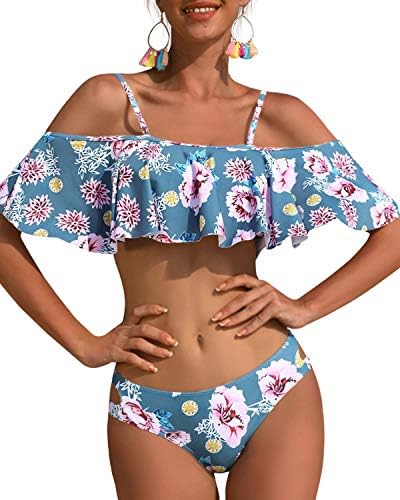 Tempt Me Women Off-Shoulder Two Piece Bikini Set Ruffled Floral Print SwimsuitTempt Me Women Off-Shoulder Two Piece Bikini Set Ruffled Floral Print Swimsuit