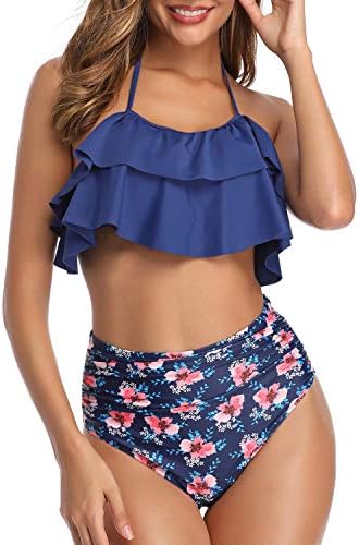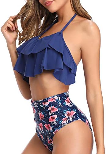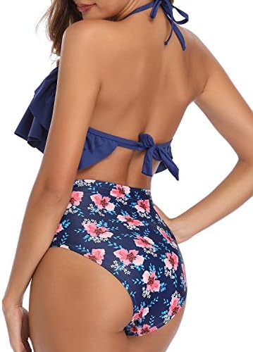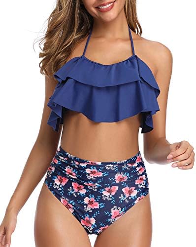 The tiered ruffles on the two piece swimsuit give the illusion of a fuller bust, giving you a more adorable, flattering and glamorous look. The sultry backless design highlights your sexy curves.