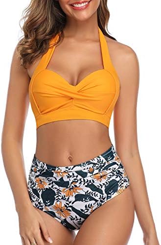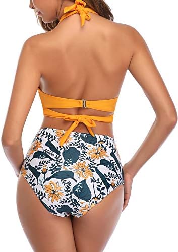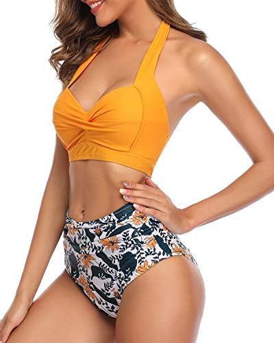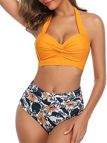Tempt Me Women Vintage Swimsuit Two Piece Retro Halter Ruched High Waist Bikini