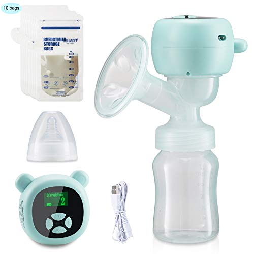 TuCao Rechargeable Integrated Electric Breast Feeding Pump Portable, Pain Free with 4 Modes (Massage, Stimulation, Pumping and Fast Pumping), 6 Levels, Quiet Come with 10 Breastmilk Storage Bags.