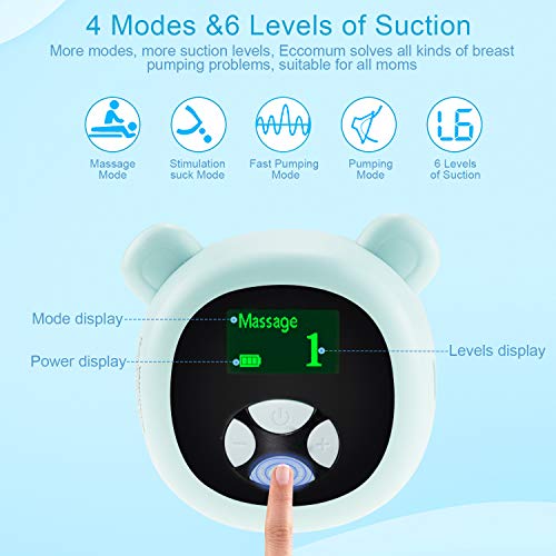 Most Efficient Breast Pump: The electric breast pump is a closed system with 4 modes and 6 adjustable levels, simulates a baby's natural sucking pattern, which can pump out 29% more milk and save 50% more time, more productive and efficient.