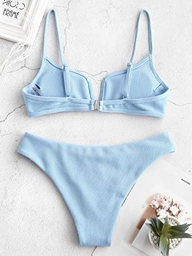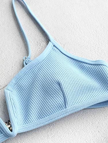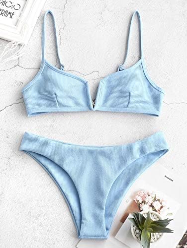 ZAFUL Bikini Ribbed V Wired Cami Swimwear Solid Color Adjustable Straps Bathing Suits for Women