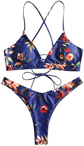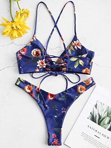 ZAFUL Women's Flower Print Back Lace-up Swimsuit