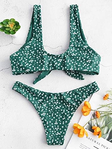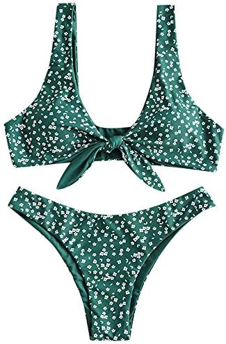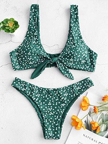 ZAFUL Women's Floral Low Waisted Front Knot Bikini Set Cute Two Piece Swimsuits