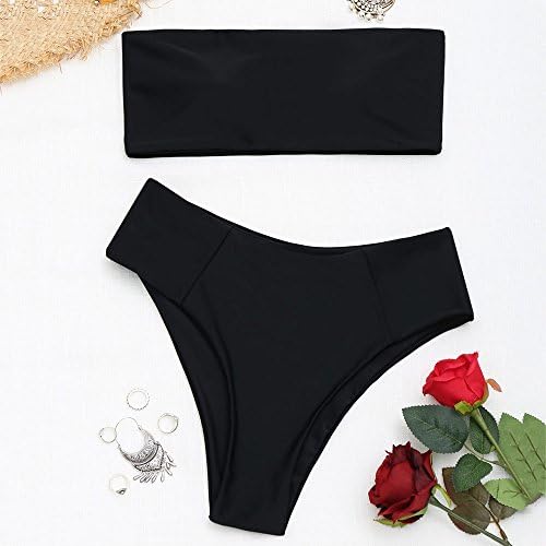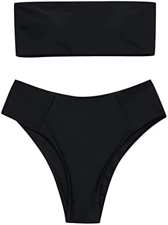 ZAFUL Women's High Cut Bandeau Bikini Set Strapless Solid Color 2 Pieces Bathing Suit Swimsuit