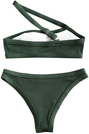 ZAFUL Women's One Shoulder Cut Out Ribbed Bandeau Bikini Set Two Piece Swimsuit
