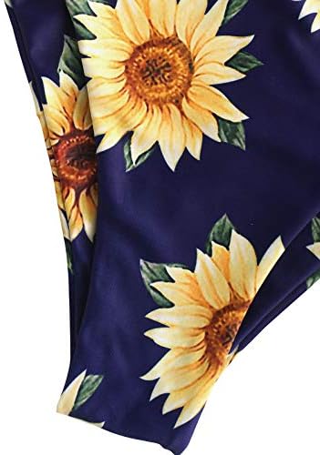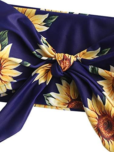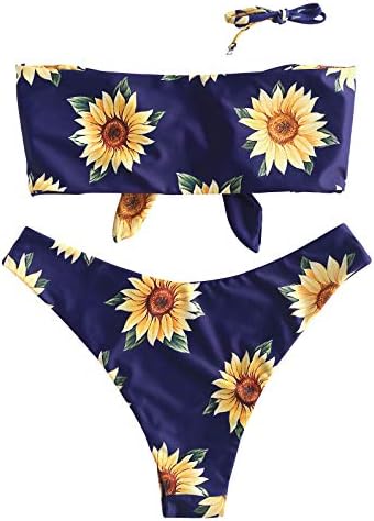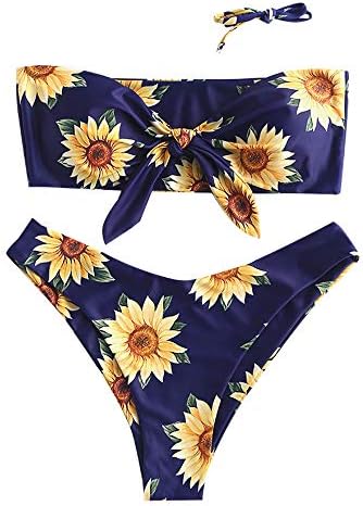 ZAFUL Women's Removable Strap Knot Front Sunflower Print Bandeau Bikini Set