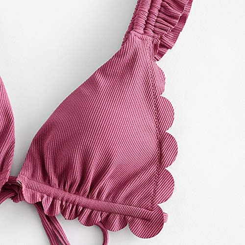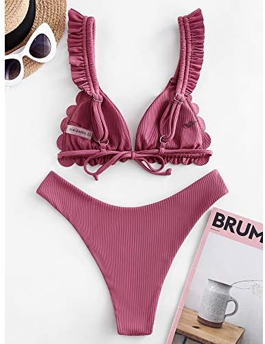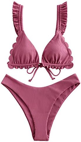 ZAFUL Women's Spaghetti Strap Tie Back Ruffle Triangle Bikini Set Swimsuit