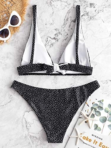 ZAFUL Women's Spaghetti Straps Polka Dot High Cut Two Piece Bikini Set