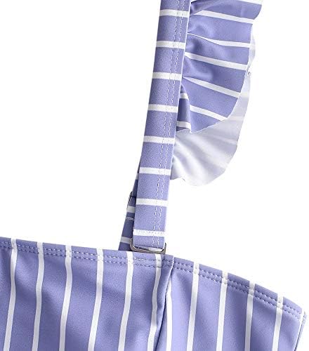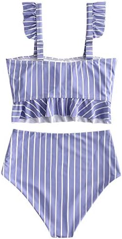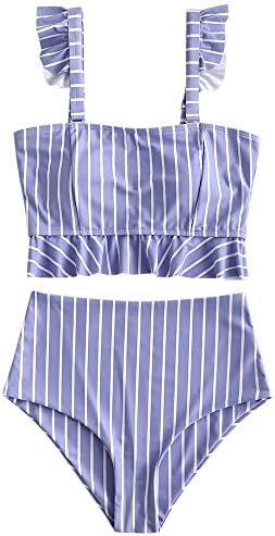 ZAFUL Women's Striped Ruffle High Waisted Two Pieces Tankini Set Swinsuit