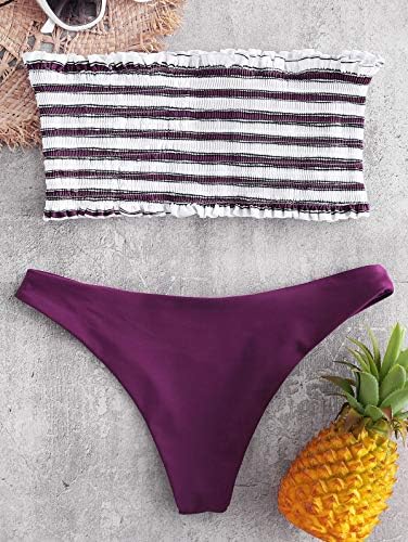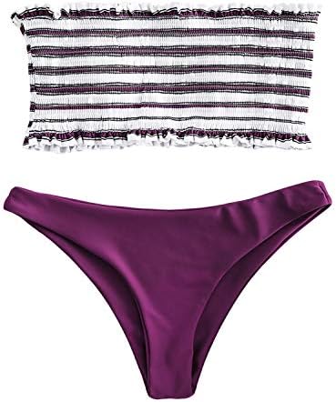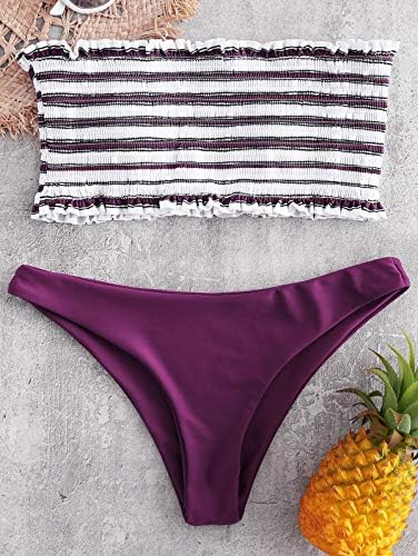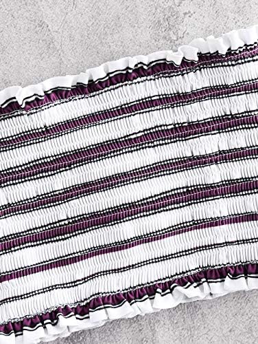 ZAFUL Women's Striped Smocked Bandeau Bikini Set Strapless Shirred Padded Two Piece Swimsuits Swimwear
