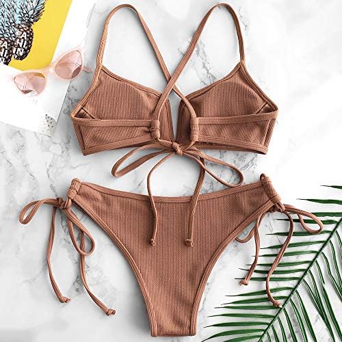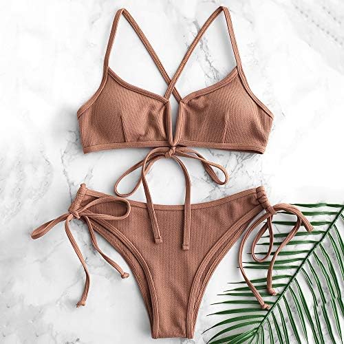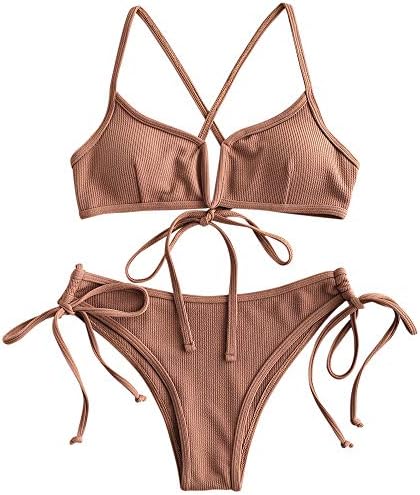 ZAFUL Ribbed V Wired Criss Cross Bathing Suits