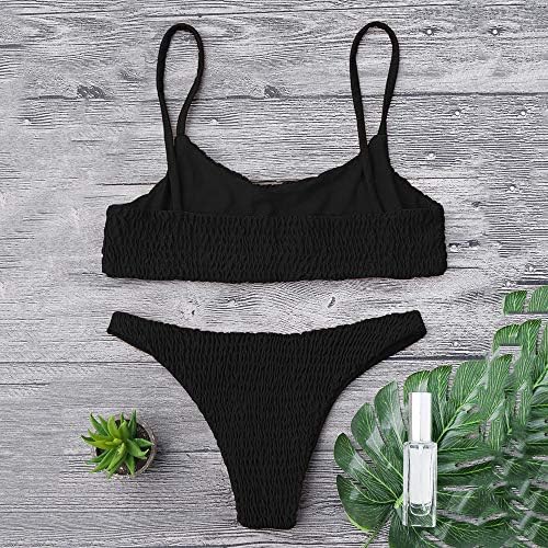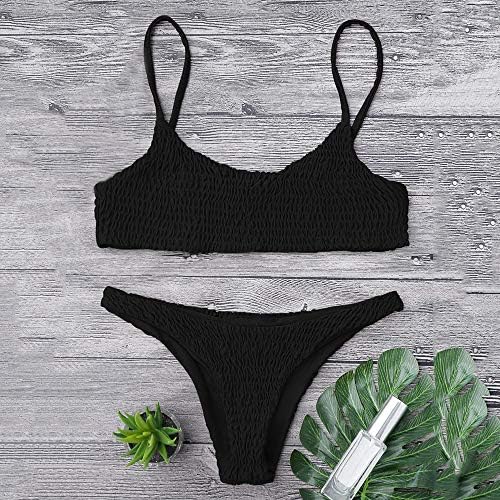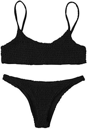 ZAFUL Women Swimsuit Smocked Cami Bathing Suit Cutout Thong Bikini Set