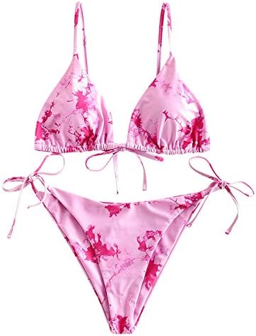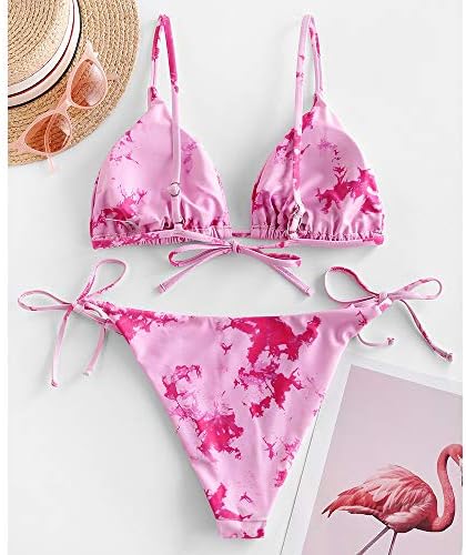 ZAFUL Women's Tie Dye Cinched String Triangle Bikini Set Three Piece Swimsuit