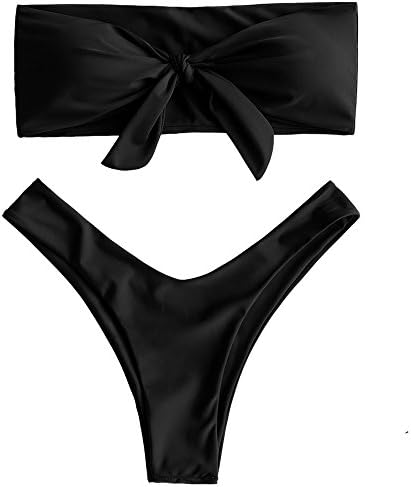 ZAFUL Womens Knotted High Cut Bandeau Bikini Set Swimwear
